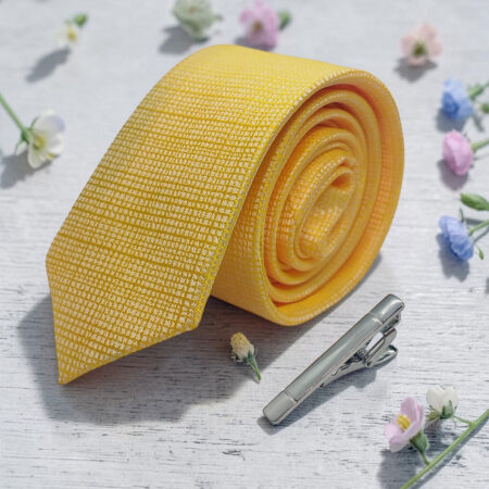 Kit Gravata Slim Amarelo Quadriculada + Prendedor Slim