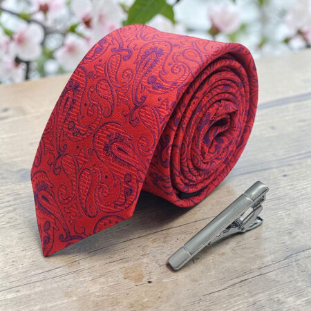 Gravata slim fit vermelha trabalhada. Gravata slim confeccionada em