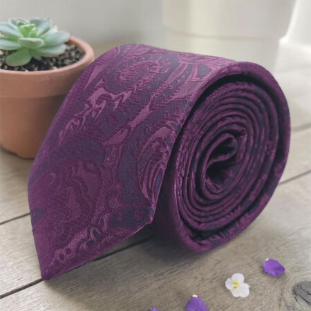 Kit Gravata Slim Lilás Bordado + Prendedor Slim