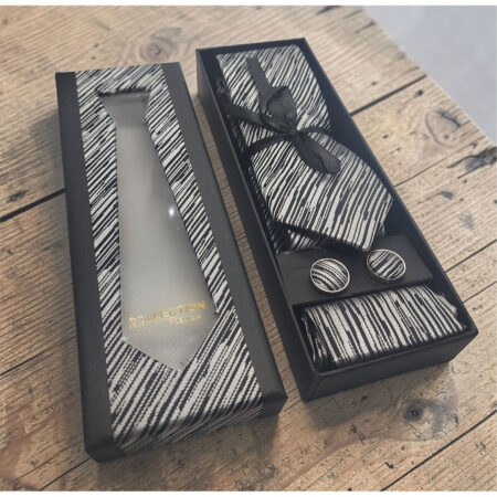 Kit Gravata Slim + Lenço de Bolso e Abotoaduras Riscado