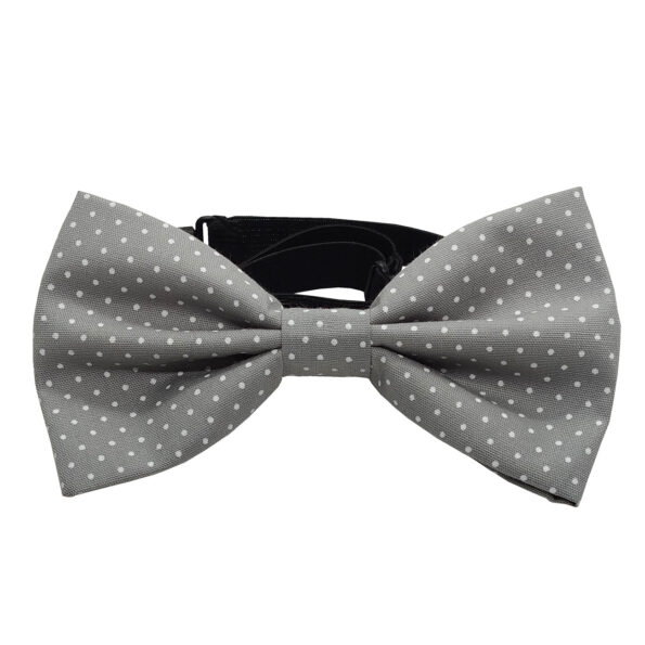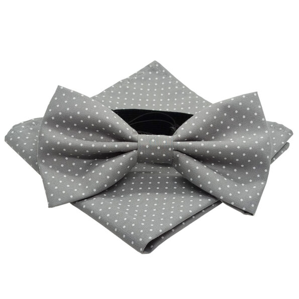 Gravata borboleta + lenço de bolso algodão cinza Bolinhas branca (Poá) premium.