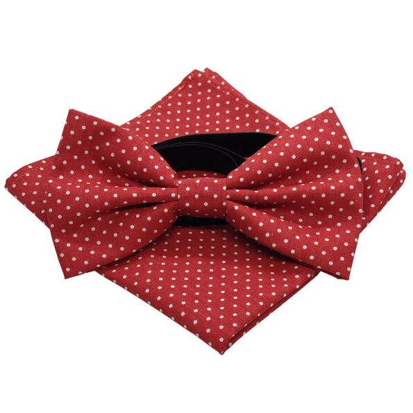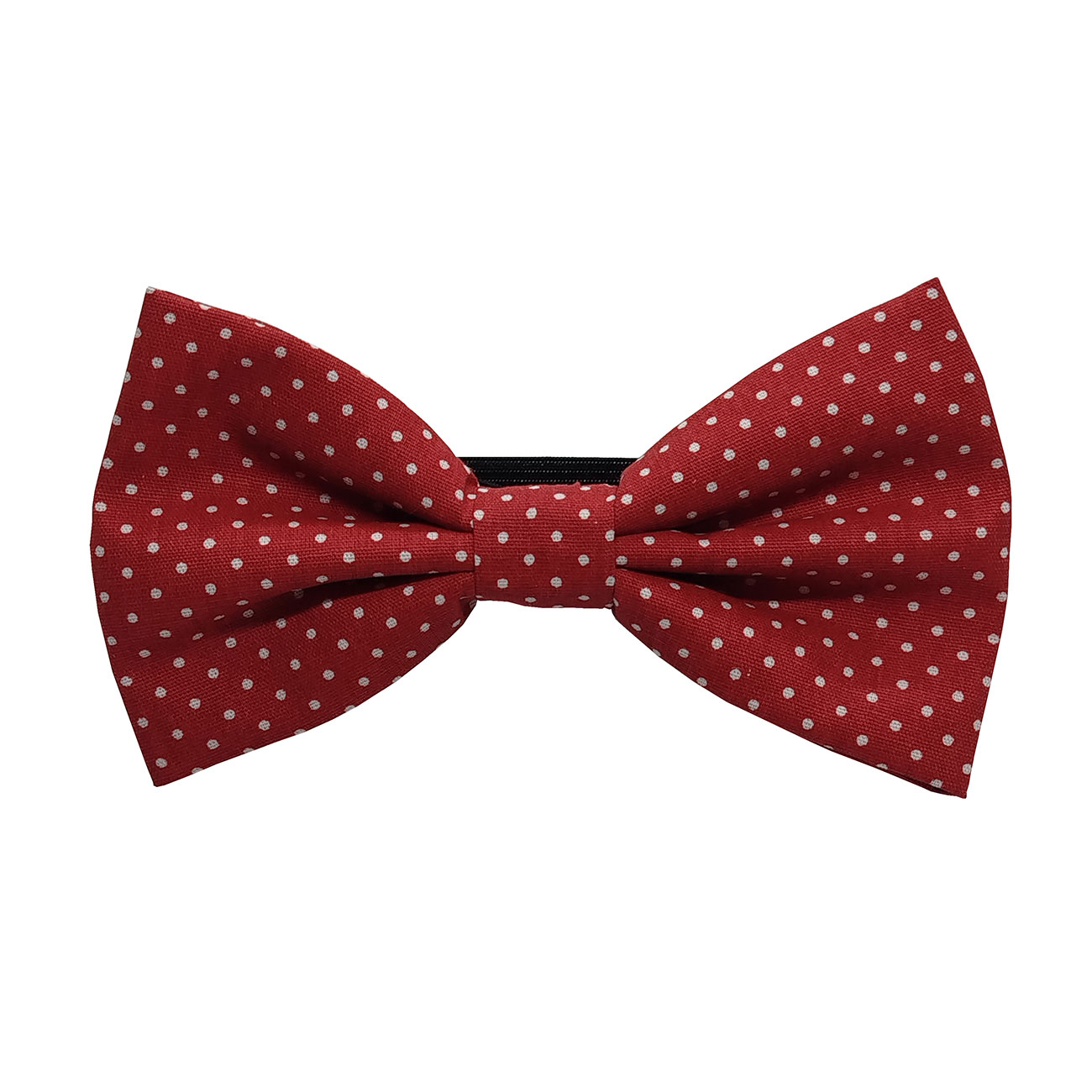 Gravata borboleta + lenço de bolso algodão vermelho Bolinhas branca (Poá) premium.