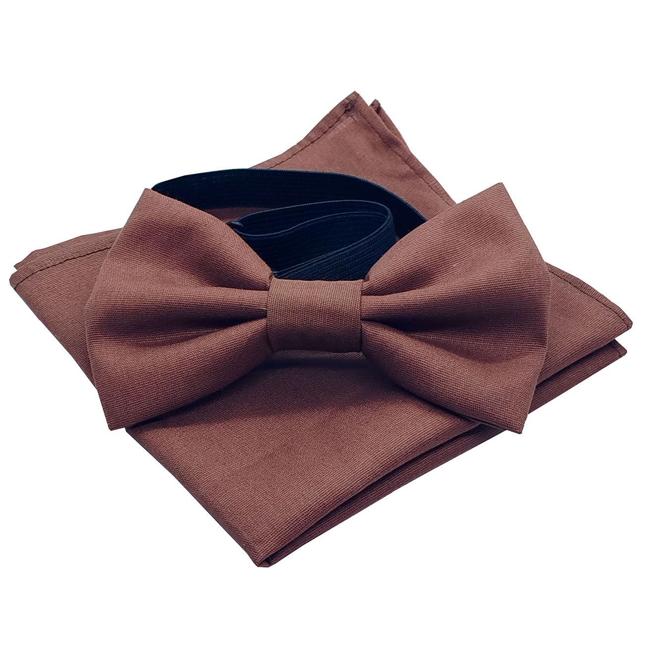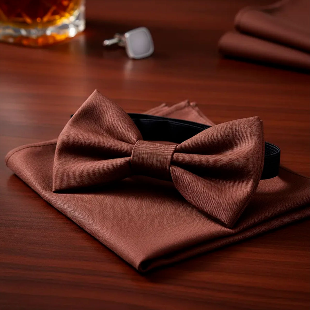 Kit gravata borboleta + lenço de bolso marrom chocolate
