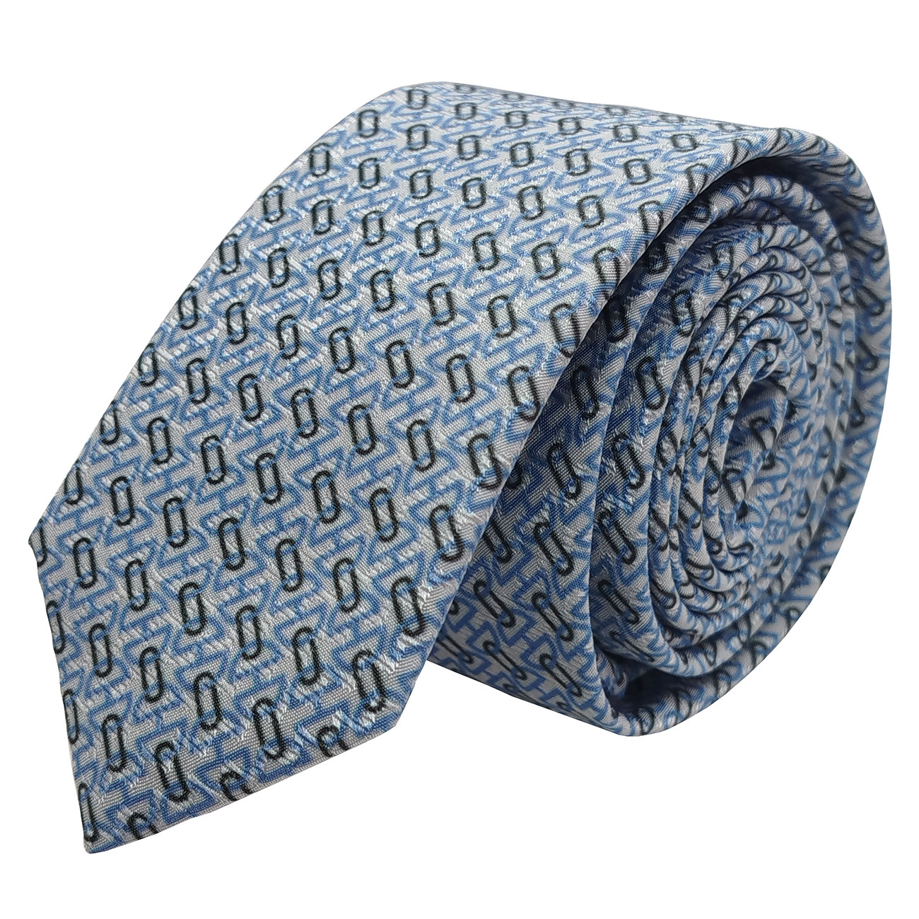 Gravata Slim Jacquard Estampa branco azul claro