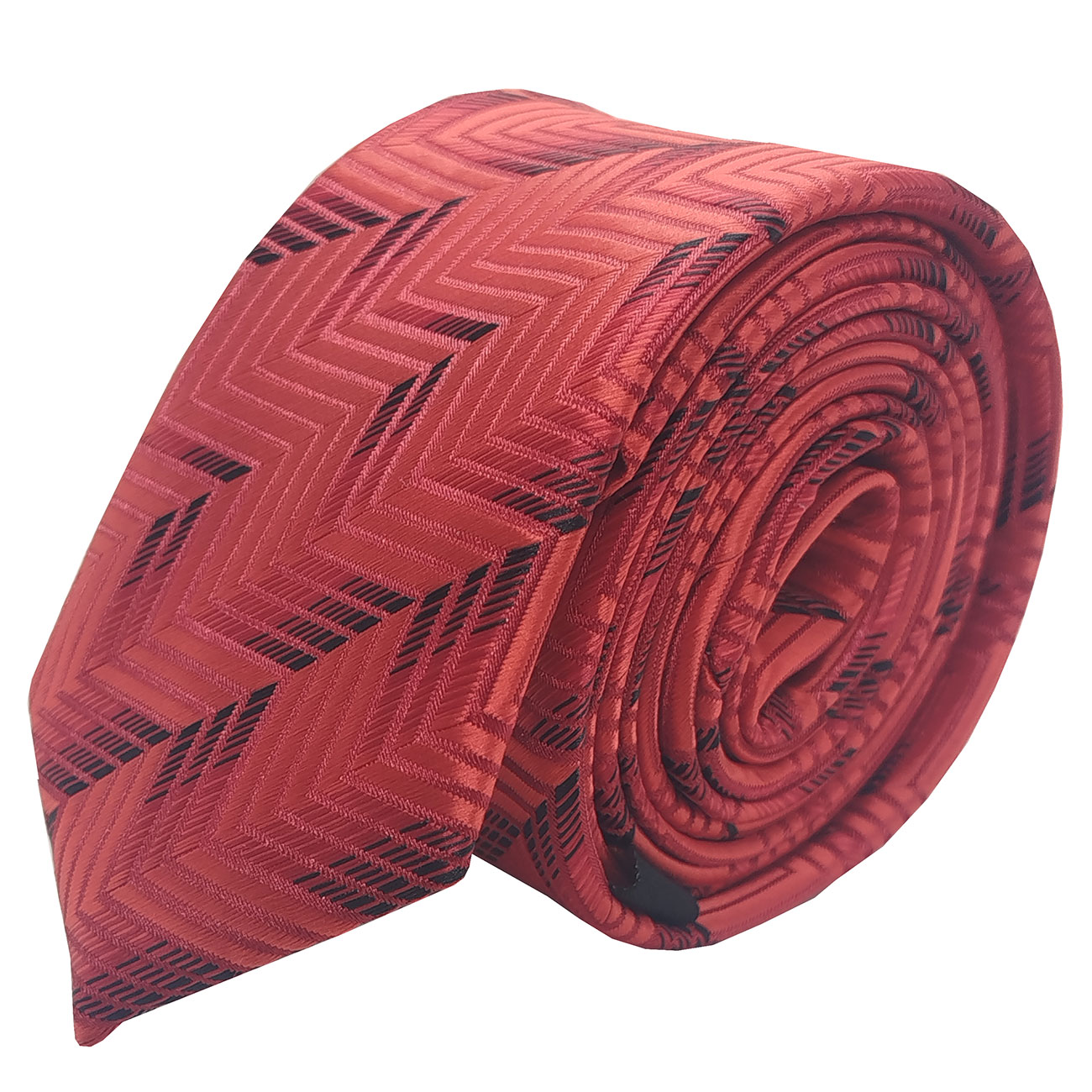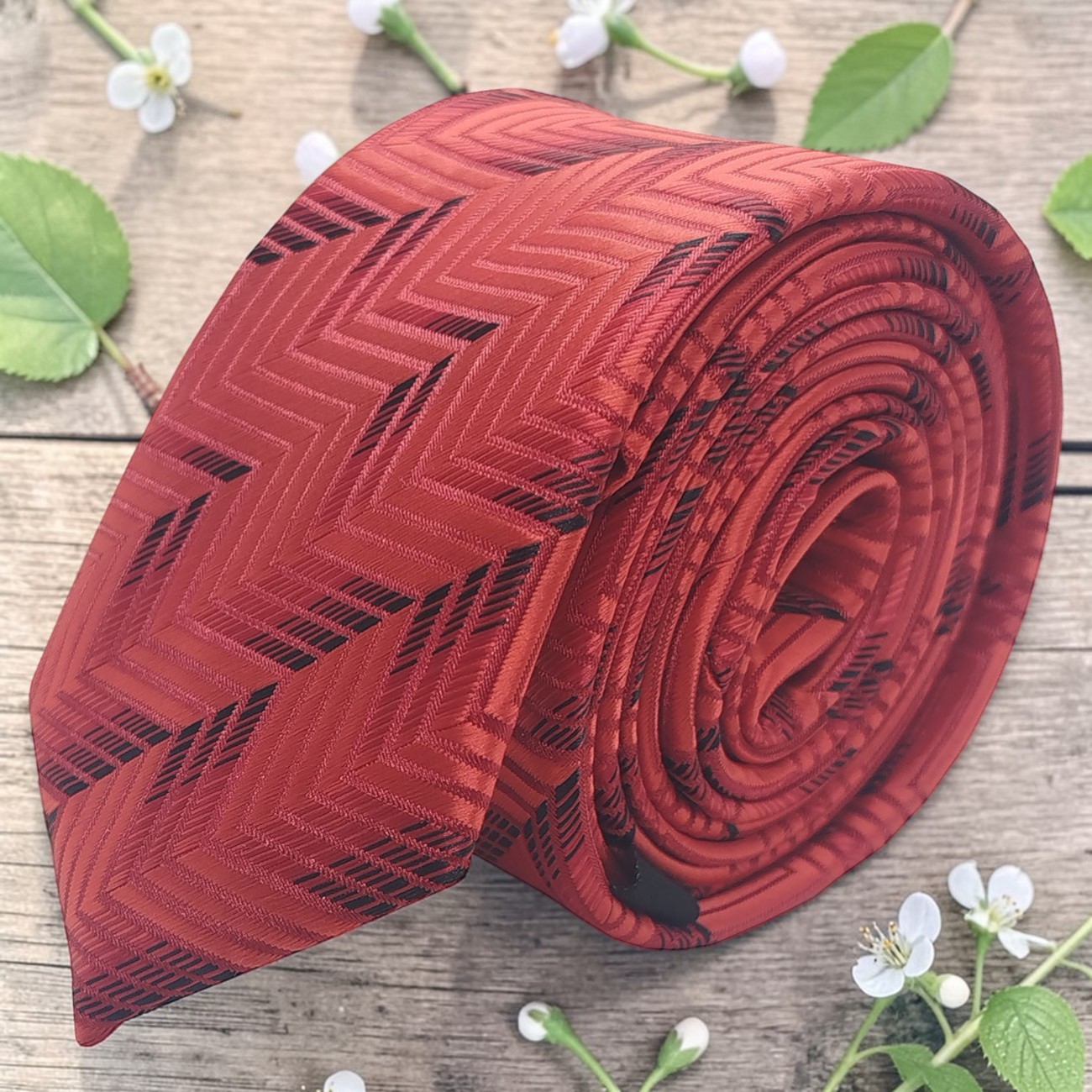 Gravata com a cor predominante vermelha com bordados detalhes pretos, com fino acabamento.