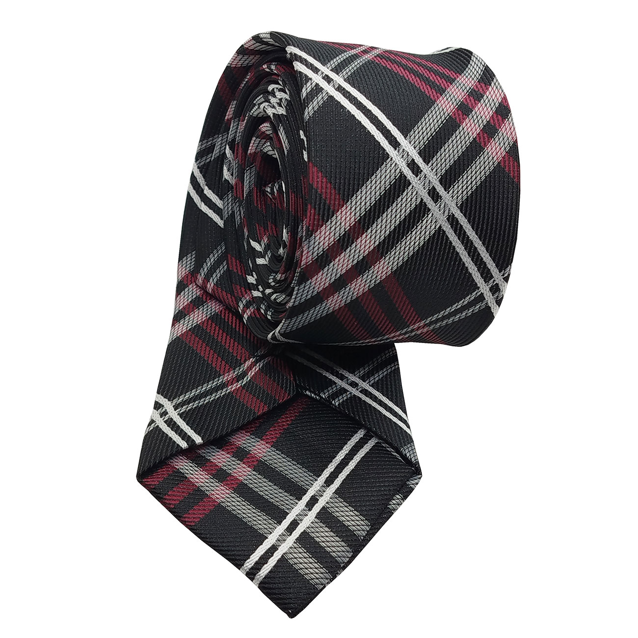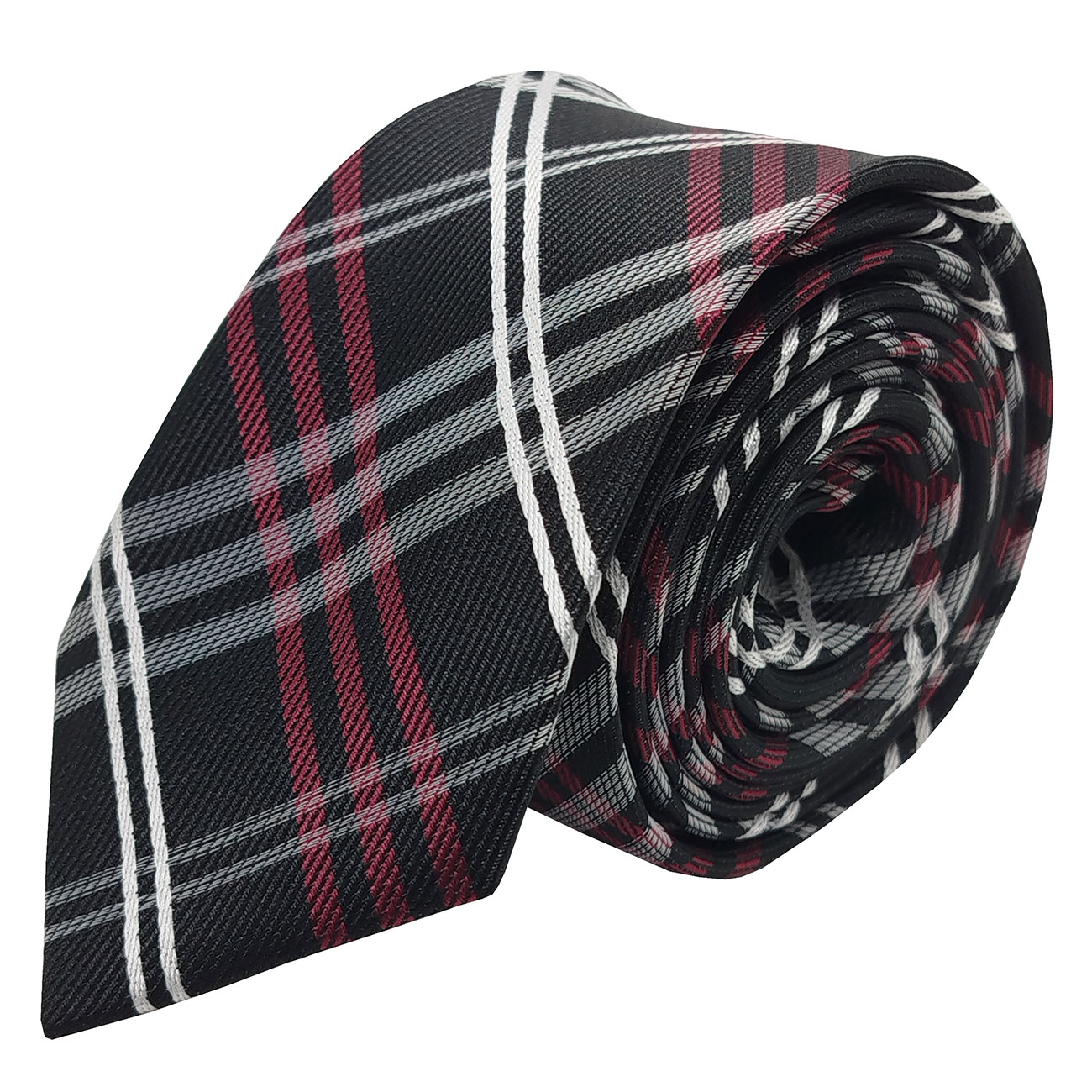 Gravata macia e que traz um charme diferenciado, esta gravata xadrez trás os tons de cores em preto e listras em branco e vermelho listrado.