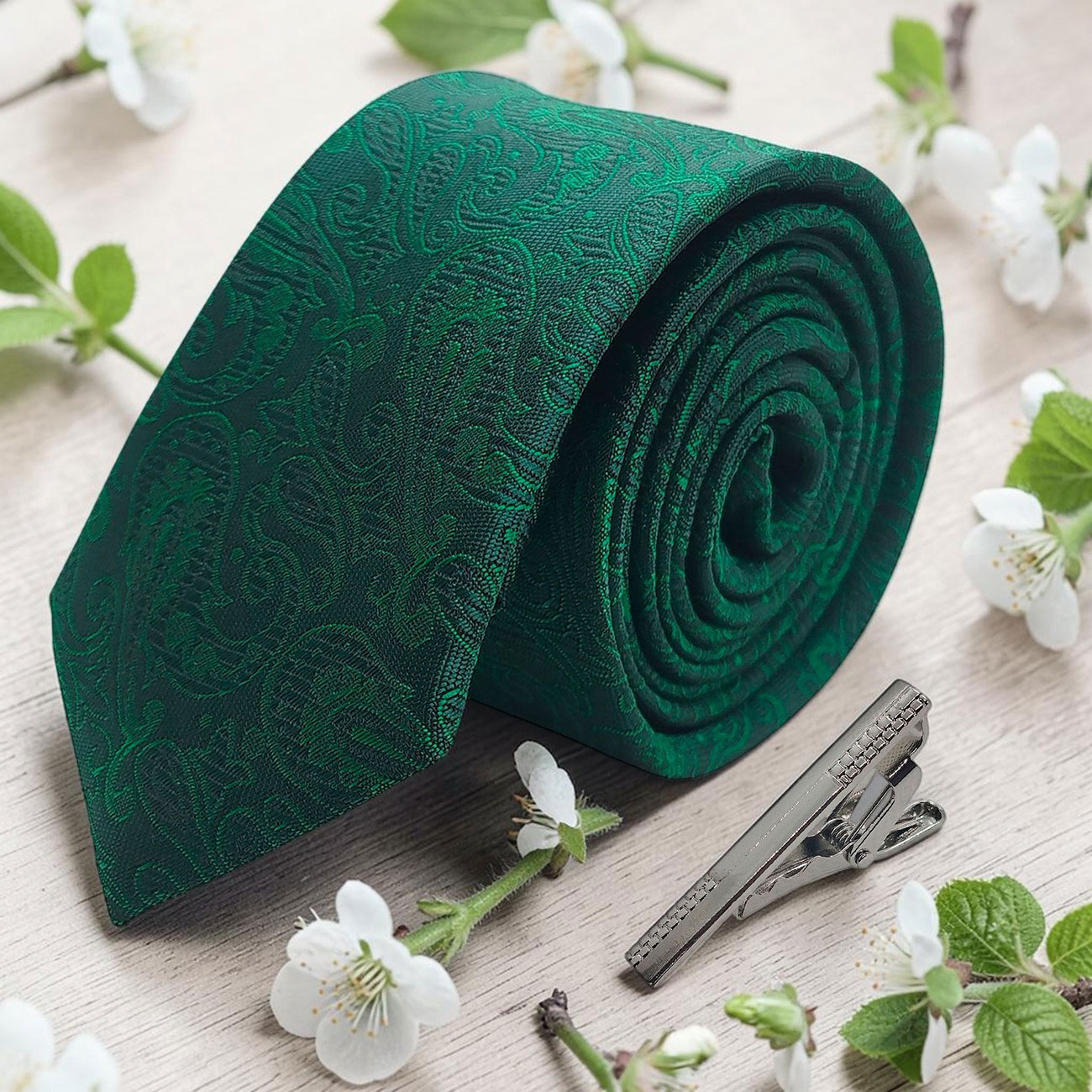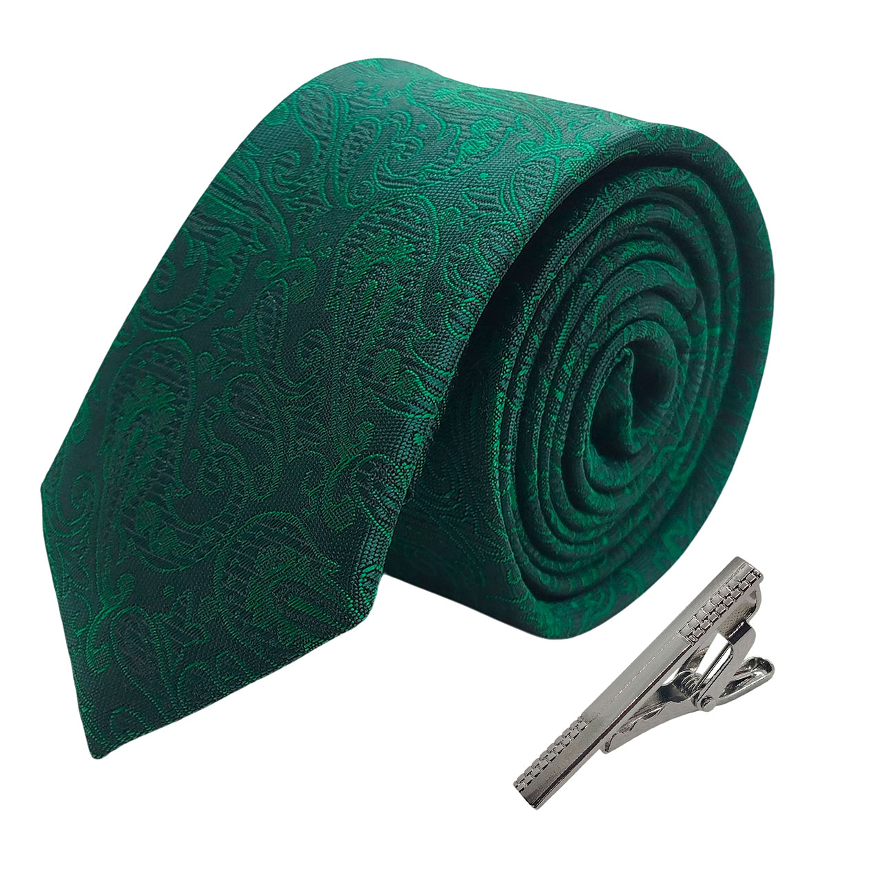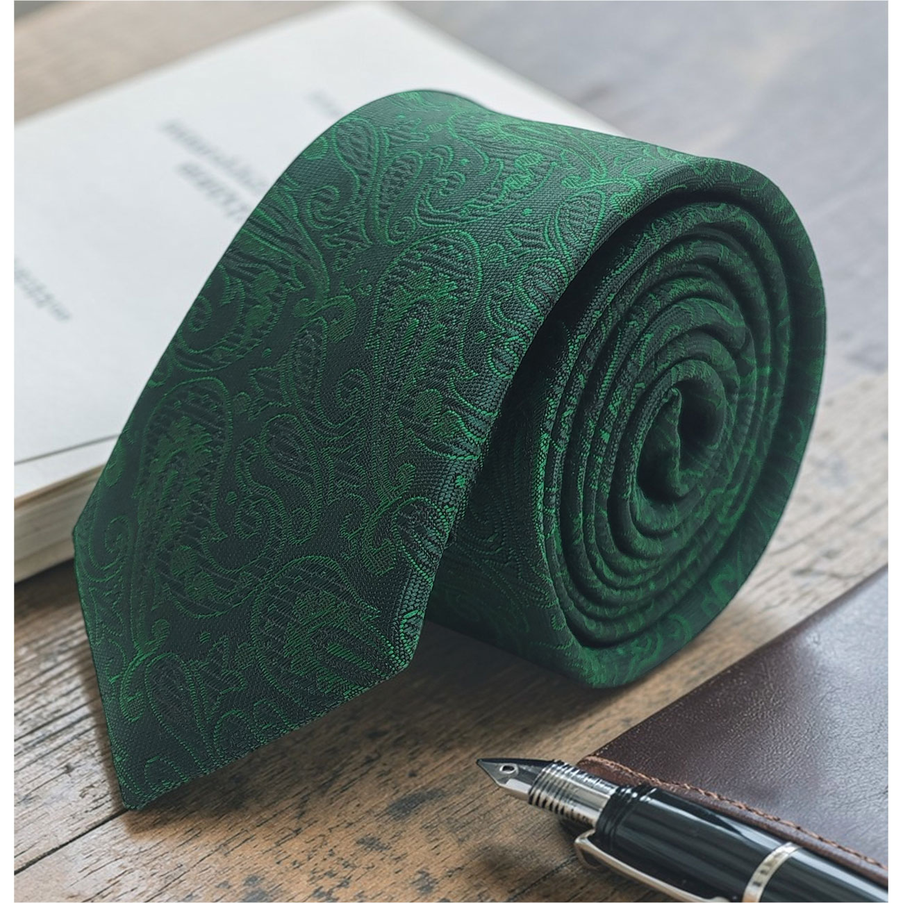 Gravatas slim tecido jacquard na cor verde, para ocasiões formais e trajes de negócios
